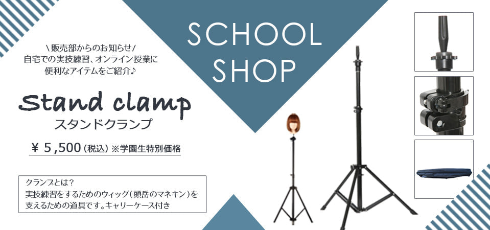 クランプとは実技練習をするためのウィッグ(頭だけのマネキン)を支えるための道具です。