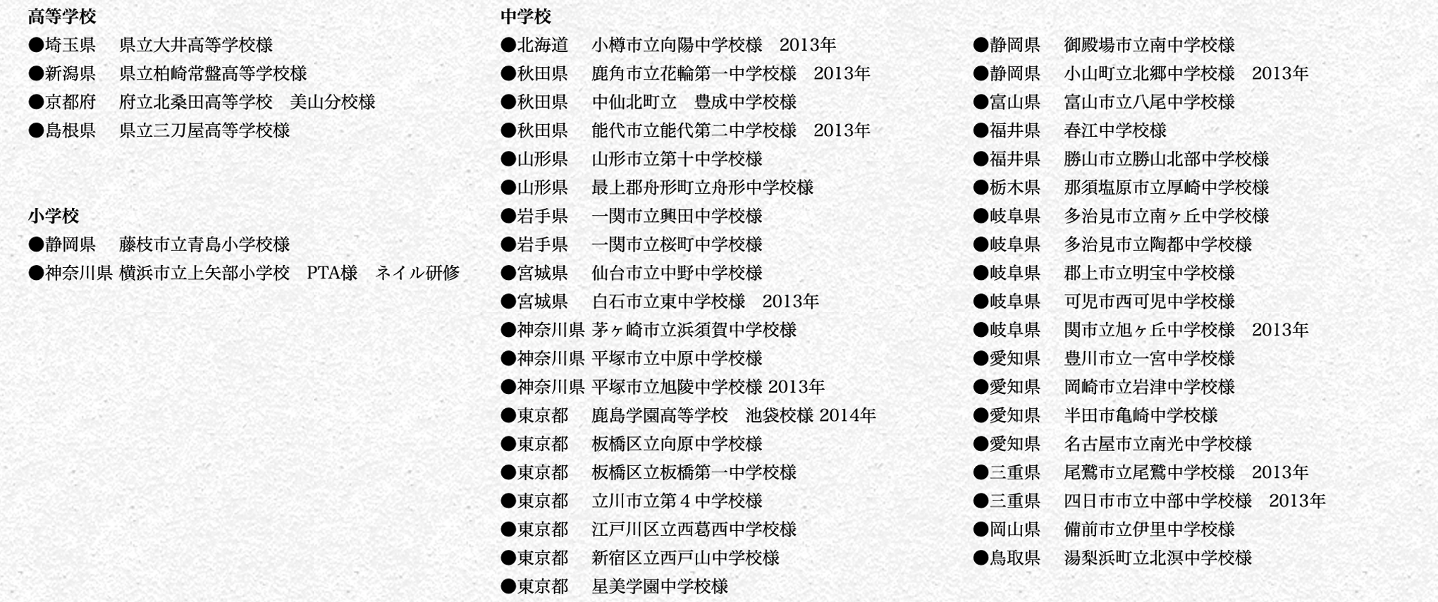 ■修学旅行や、研修旅行で「職場研修」、「東京研修」などを行っている中学校や高校に対して、全面的なご協力をさせていただいています。もちろん、総合高校での「産業社会と人間」の授業の一環、また東京近郊の学校での授業などにも、ご協力させていただいています。夏休みや冬休み中も実施しております。 人数がお一人でもご協力いたしますので、お気軽にご相談ください。