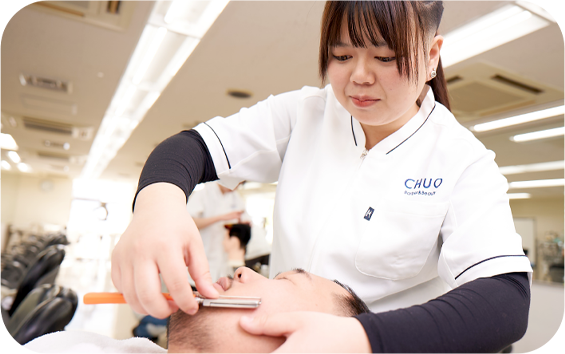 - レディースシェービングが学べる 女性の「キレイ」を引き出す理容の人気技術。肌へのやさしさを大切にしながら、プロならではの確かな技術を学べます。